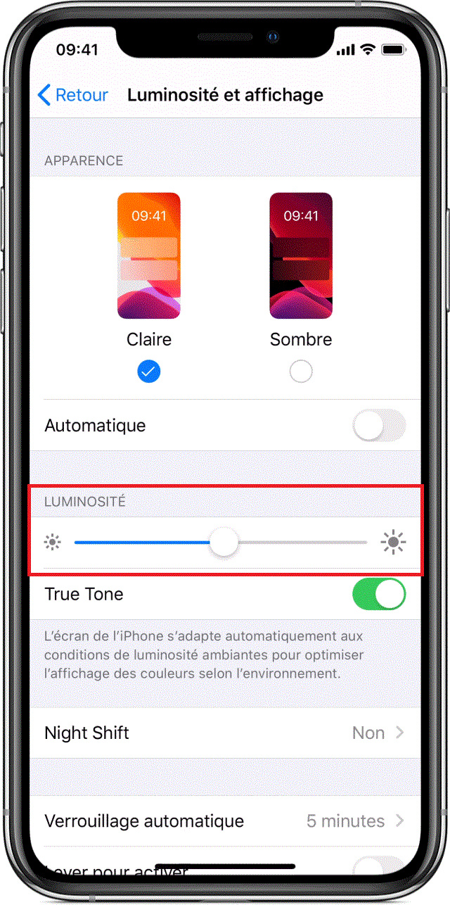 Vous pouvez facilement améliorer l’autonomie de la batterie de votre iPhone en réduisant la luminositéde votre écran. Vous pouvez aussi désactiver le réglage automatique de la luminosité afin de pouvoir la garder aussi basse que vous le souhaitez.