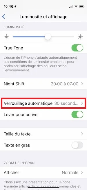Cela peut paraître être un petit changement, mais cela vous aidera vraiment à avoir une meilleure autonomie de batterie. En mettant votre iPhone en veille après une plus courte durée, vous utiliserez moins d’électricité. Réduisez la durée jusqu’à une durée minimale qui vous convient.