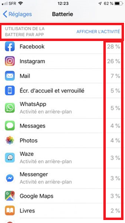 - Cliquez sur l’onglet « utilisation de la batterie par application»