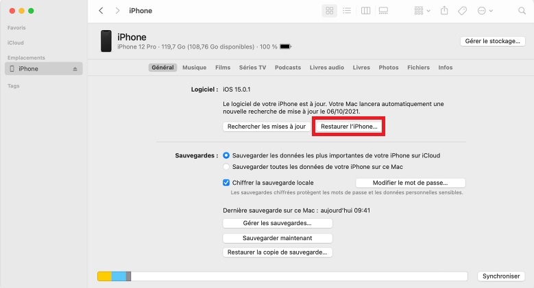 - Cliquez sur « Restaurer ». Suivez les instructions d’iTunes.